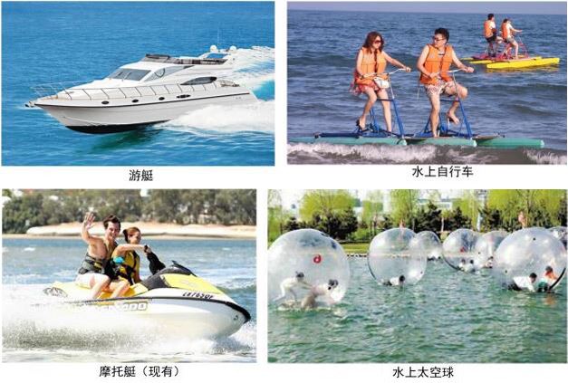 項目策劃說明:水上運動中心加載游艇租賃、水上自行車租賃、摩托艇租賃以及水上太空球游玩四個主要項目,其中摩托艇項目為現有項目。設施要求方面,需在水上運動中心面上建設游船碼頭供停放游艇、摩托艇和水上自行車,另外劃出一塊淺水區域作為水上太空球的游樂場所。